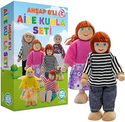 CIRCLE TOYS Ahşap 6'lı Aile Kukla Seti, Çok Renkli