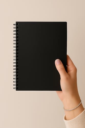 Çizgisiz Spiralli Not Defteri, A5 Boyut (15×21 cm), 60 Yaprak, 90gr. Ivory Kağıt, Ofis İçin Uygun (Siyah)