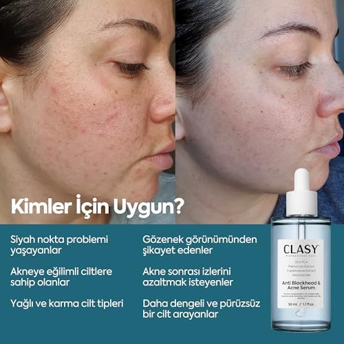 CLASYCARE Niacinamide Akne Karşıtı Serum – Gözenek Sıkılaştırıcı, Yağ Dengesi ve Cilt Aydınlatıcı Serum – Siyah Nokta ve Leke Karşıtı Yüz Serumu, 50 ml