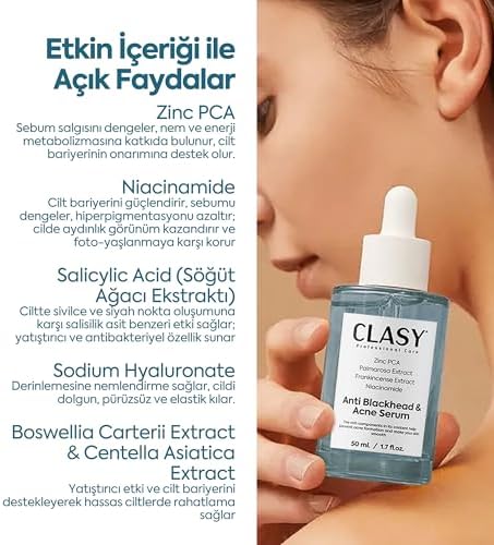 Siyah Nokta ve Akneye Karşı Etkili Formül Zinc PCA, Niacinamide ve Salisilik Asit içeren güçlü formülüyle akne ve siyah noktalara doğrudan müdahale eder. Cilt bariyerine zarar vermeden temiz ve dengeli bir görünüm sağlar. Gözenekleri Sıkılaştırır, Yağı Dengeler Bu yağlı ciltler için gözenek sıkılaştırıcı serum, ciltteki fazla sebumu kontrol altına alırken genişlemiş gözeneklerin görünümünü azaltır. Gün boyu mat ve pürüzsüz bir görünüm sağlar. ️ Cilt Bariyerini Güçlendirir ️ Frankincense (Günlük) ve Niacinamide ile zenginleştirilen bu serum, cilt bariyerini dış etkenlere karşı destekler. Cildin doğal savunmasını güçlendirmek isteyenler için idealdir. ✨ Cilt Tonunu Dengeleyip Aydınlatır ✨ Leke ve cilt tonu eşitsizliği sorunlarını hedef alarak hiperpigmentasyonu azaltır. Düzenli kullanımda cildiniz daha parlak, dengeli ve sağlıklı bir görünüme kavuşur. Hassas Ciltlere Uygun Nemlendirici Etki Sodyum Hyaluronat ve Centella Asiatica ile cildi yatıştırır ve hafif ama etkili bir nemlendirme sağlar. Hassas, akneye eğilimli ciltler için idealdir. CLASYCARE Niacinamide Akne Karşıtı Serum – Gözenek Sıkılaştırıcı, Yağ Dengesi ve Cilt Aydınlatıcı Serum – Siyah Nokta ve Leke Karşıtı Yüz Serumu, 50 ml