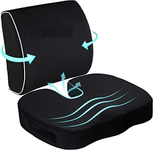 Cocix Oturma Minderi Bel Yastığı Bel Destek Yastığı Ortopedik Visco Yastık Basur Minderi Ofis Minderi Set,, Siyah, Normal
