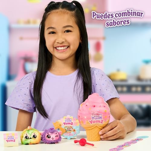 Cookeez Makery Yum Yumz, eğlenceli ve sürprizlerle dolu bir oyuncak seti Yum Yumz İkili Paket içeriğinde iki farklı sürpriz oyuncak bulunur Oyuncak dondurma külahının içinde, iki adet kokulu peluş oyuncak yer alır Set içeriğinde iki adet çıkartma ve bir adet oyuncak kiraz bulunur Çocuklar çıkartmayı dondurmanın içine ekleyebilir, külahın kapağını yerleştirip kiraz anahtarını çevirerek peluş oyuncaklara ulaşabilir Cookeez Dondurmalar Tekli Paket