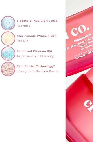 Beş çeşit hyalüronik asit ile yoğun ama ağırlık yapmayan nemlendirme sağlar Antioksidan bakımı sağlar ve aydınlatır Cildi dolgunlaştırır ve canlandırır Canlı ve eşit bir cilt tonu sağlar Cildi çevresel faktörlere karşı korumaya yardımcı olur Cream Co. Su Bazlı Moisturizer Nemlendirici Aydınlatıcı Yüz Kremi, Hyaluronik Asit, 50 ML, Tüm Cilt Tipleri