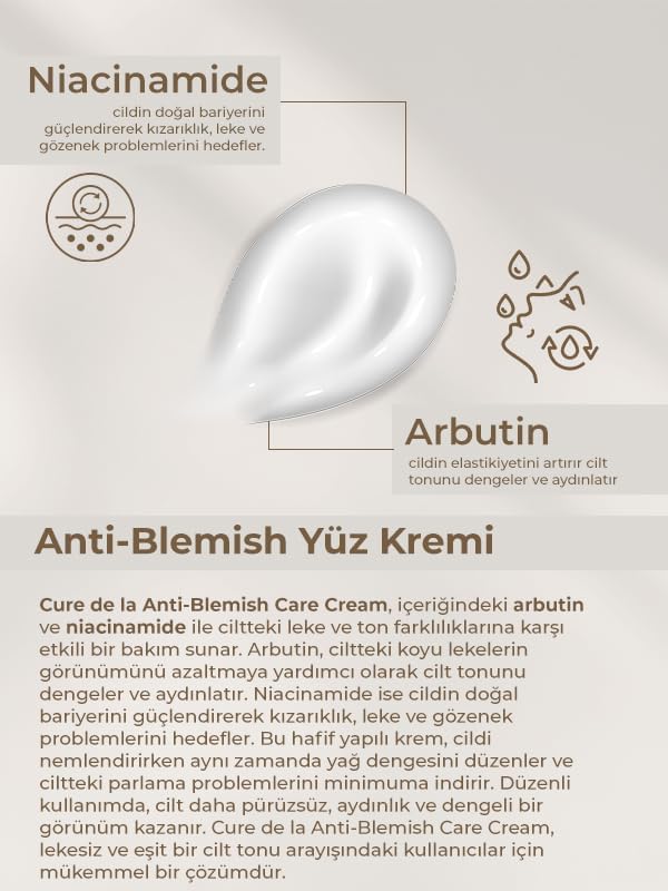 Cúre De La – Anti-Blemish Care Yüz Kremi – Arbutin & Meyan Kökü Özü & Niacinamide