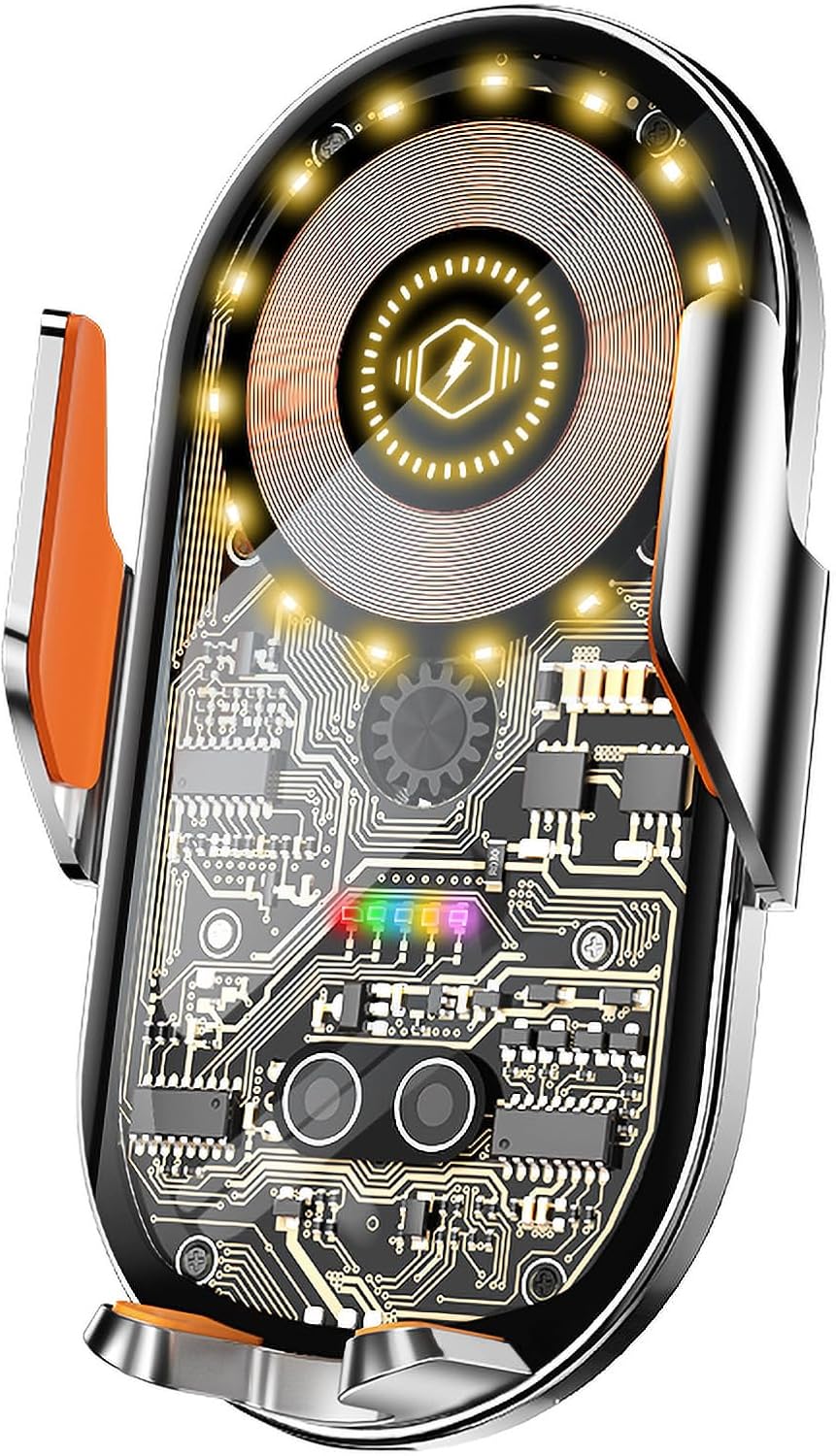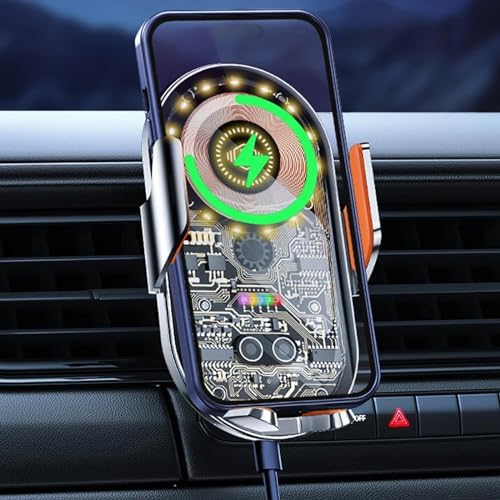 Cyberpunk Kablosuz Araç Şarj Cihazı Montajı, 15 W Hızlı Şarj, Araba Havalandırma için Otomatik Sıkıştırmalı Telefon Montajı, iPhone15/14/13/12/11/X/8 Serisi/ Galaxy Telefonları için