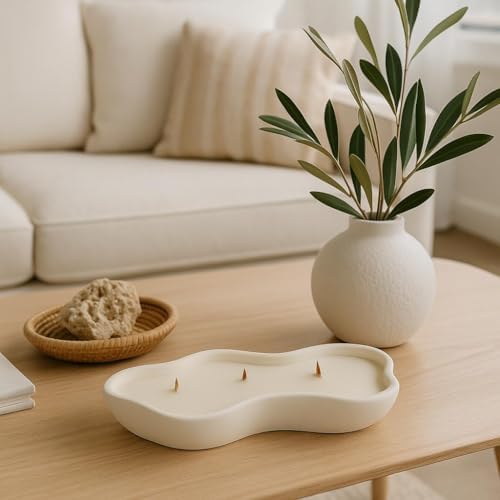 Dalgalı Kenarlı Kapta Üç Ahşap Fitilli El Yapımı Dekoratif Mum Kokulu Soya Mumu Dalgalı Kenarlı Kapta Üç Ahşap Fitilli El Yapımı Dekoratif Mum Kokulu Soya Mumu