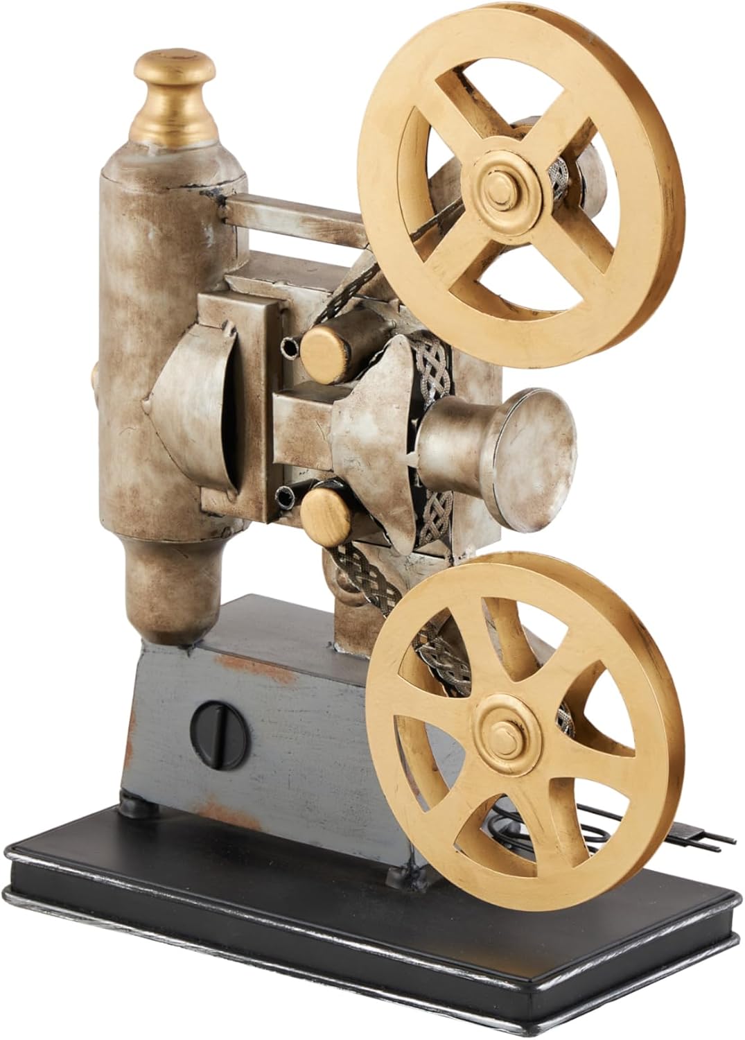 Temalı: Geçmişten ilham alan vintage tasarımlar, karakter dolu, sıcak ve davetkar bir ortam oluşturur Demirden üretilmiştir: Saf döküm demirden yapılmış bir dekoratif heykeldir Siyah ve altın metal kaplama: Retro esintili, çok renkli metalik yüzeye sahip, detaylı işlenmiş vintage temalı projektör dekorudur Soyut Kamera Heykel Tasarımı Özelli̇kleri: İki film makarası dahil gerçekçi detaylarla el işçiliğiyle üretilmiştir. Kullanışlı boyutlarda: Ürün boyutları: 27,8 × 13,8 × 37,2 cm; ağırlığı 1,38 kg’dır Deco 79 Metal Film Dekoratif Kamera Heykeli, 28x13x38 cm, Siyah
