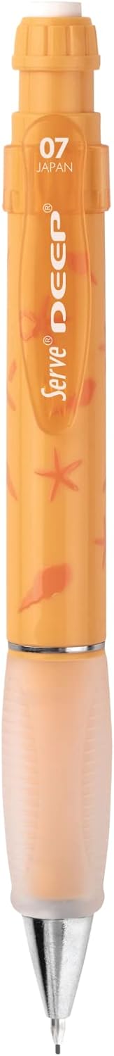 Yüksek Kaliyesiyle Üretilmiştir Çevirince Ortaya Çıkan Kaliteli Silgi Gizlenebilir Uç Mekanizması İle Güvenli Kullanım,Ergonomik Grip Hardal Sarısı Renginde Denizyıldızı Desenli Deep Mekanik Kurşun Kalem 0.7 mm Hardal Sarısı Denızyıldız Deseni