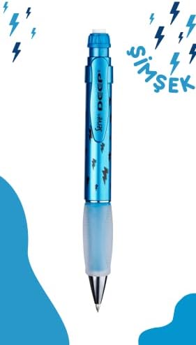 Yüksek Kaliyesiyle Üretilmiştir Çevirince Ortaya Çıkan Kaliteli Silgi Gizlenebilir Uç Mekanizması İle Güvenli Kullanım,Ergonomik Grip Metalik Mavi Renginde Şimşek Desenli Deep Mekanik Kurşun KLM 07 MM, Metalik Mavi, Şimşek Deseni