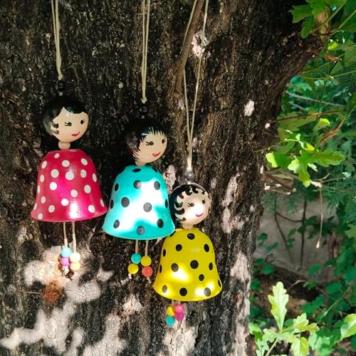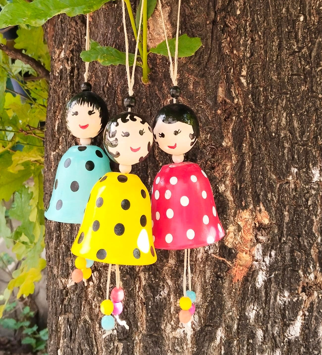 Dekoratif Asılabilir Doll Süs, 3'lü Set, Puantiyeli Desenli, Renkli Boncuklu, Bahçe ve Ev Dekorasyonu Çan süs