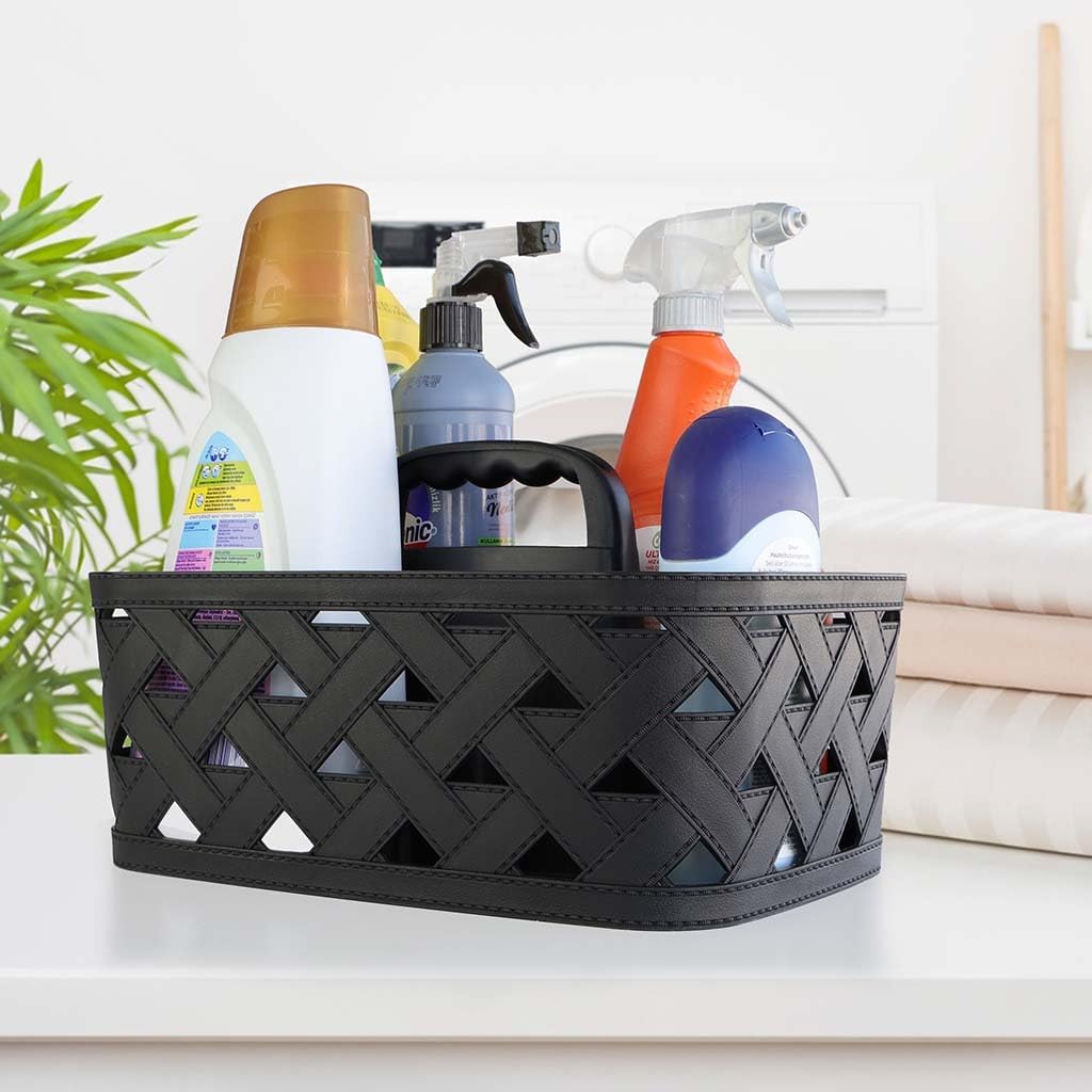 İster dolap içi ister açık alanda evinizde kolayca düzen sağlar. Eşyalarınızı düzenleme ve saklama amacıyla kullanabileceğiniz şık ve dekoratif bir üründür. Düzenleyici işlevi sayesinde işlerinizde kolaylık sağlayacaktır. Deri Desenli Saplı Sepet