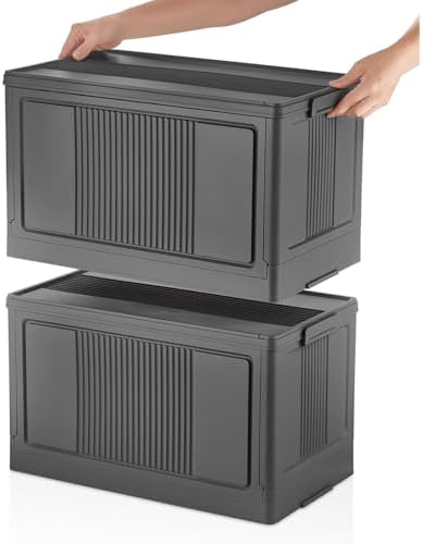 Dev Boy Katlanır Kilit Kapaklı Kasa 55 Litre Hacimli, Yer Kaplamayan Portatif Saklama Kutusu Ardiye, Balkon, Mutfak, Kiler, Bahçe ve Araç Bagajı İçin Güvenli Organizer (ANTRASİT)