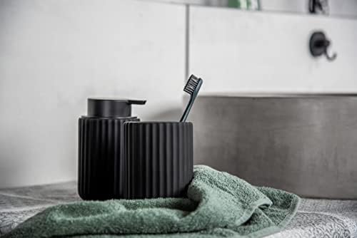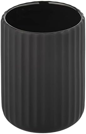 Modern tasarım. Eviniz için sadece en iyisi – mat siyah renkte, nervürlü yapısı ve yumuşak dokunuşlu yüzeyiyle modern “Belluno” tuvalet seti, banyonuzda ve misafir tuvaletinizde abartılı vurgular yaratıyor. Pratik fonksiyon: Diş fırçası kabı, diş fırçalarını ve diş macununu dekoratif bir şekilde her zaman erişilebilir bir yerde tutar. Yüksek kalite: Uzun ömürlülük ve sürdürülebilirlik bizim için önemli olduğundan, nitelikli seçilmiş malzemeler kullanıyoruz. Uzun yıllar boyunca bu aksesuarı kullanabilmeniz için diş fırçalığı ince seramikten üretilmiştir. Akıllıca birleştirilebilir: Serinin uyumlu tuvalet seti ve sabunluk ile banyo mobilyalarınızı tamamlayın. Rahat bir banyonun mükemmel tamamlayıcısıdır. Serinin farklı renk varyasyonlarını bir araya getirerek oldukça modern bir görünüm yaratabilirsiniz. Optimum boyutlar: (genişlik/derinlik x yükseklik) Ø 8 x 11 cm boyutlarıyla cam, her banyo ve misafir tuvaleti için ideal ölçülere sahiptir. Diş Fırçası Tutucu Belluno Siyah Seramik