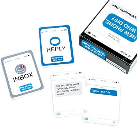 Yeni Genişletme Paketi, Who Dis: Bu genişletme paketi, Yeni Telefona eklemek için saçma yeni Gelen Kutusu + Yanıt Kartlarıyla dolu, Who Dis? Temel Oyun Orijinalini unutmayın: Yeni Telefon Gerektirir, Kim Bu Oynamak için temel oyun. 17+ için tasarlanmıştır: Bu genişleme paketi yetişkin içerik içerir ve 17 yaşından büyük çocuklar için tasarlanmıştır. Ana oyun 3+ oyuncu gerektirir. Nasıl Oynanır: Oyuncular gönderilmiş (veya “gelen kutu”) kartı çizerken, grubun geri kalanı en komik “yanıt” kartını çalmaya yarışır. Herkes seçtiği yanıt kartını oynadığında, dönen hakim, en komik olana bir puan verir. Turun sonunda en çok puanı olan oyuncu tacı alır. İçeride ne var: Ana oyuna eklenecek 45 Gelen Kutu kartı ve 135 yanıt kartı içerir. Do You Meme Yeni Telefon, Who Dis? Genişletme Paketi – Yeni Telefona Eklenmek üzere Tasarlandı, Who Dis? Core Game