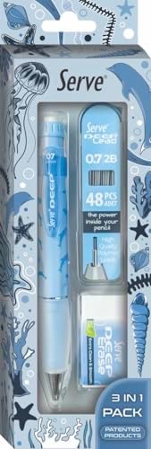 Deep Versatil Kalem Gizlenebilir Uç Mekanizması İle Güvenli Kullanım,Ergonomik Grip Deep Min Yüksek Kaliteli Grafit Min,Tüp İçerisinde 48 Adet,Fonksyionel Tüp Kapağı Deep Silgi Kalem izlerini Kolayca Temizleyen Beyaz Silgi 0,7 mm Kalem ve Kalem Ucu 3'Lü Gök Mavi Kalem Seti Doğa Desenli Deep Kalem, Deep Silgi ve Deep Min, 0.7 mm, Gök Mavi