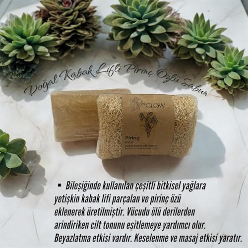 Doğal Kabak Lifli Pirinç Özlü Sabun, Cilt Tonu Eşitleyici ve Beyazlatıcı Etkili, Masaj Özellikli, 120gr