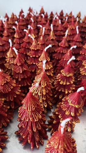 Altın simli kırmızı balmumu mum Doğal Petek Mum Kırmızı Altın Simli Çam Ağacı Boy 8.5 Cm Bal Mumu Beeswax Candle Doğal Petek Mum Kırmızı Altın Simli Çam Ağacı Boy 8.5 Cm Bal Mumu Beeswax Candle