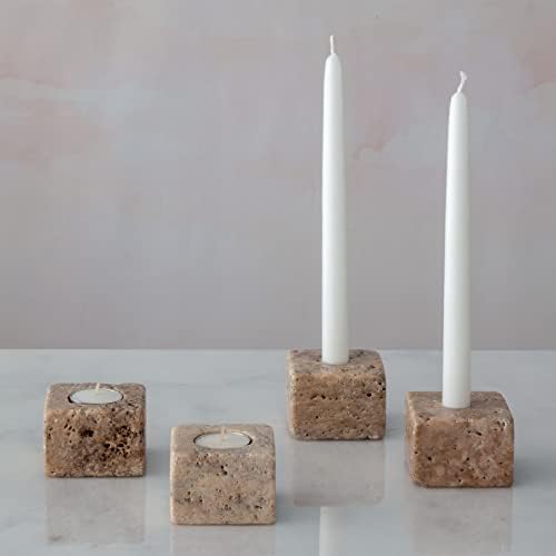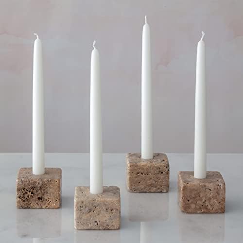 Doğal Traverten Mermer Şamdan Mumluk 4lü Set Silver