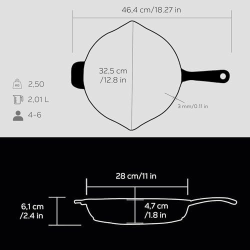 Izgara Tava Dışbükey Taban Yuvarlak 28 cm Döküm Demir Yekpare Saplı 1 Kat, 1 Fırın Döküm Yuvarlak Izgara Tava, Metal Kulplu, Konkav Taban, 28 cm