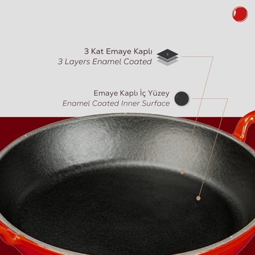 Döküm Yuvarlak Sahan Döküm Demir Yekpare Çift Kulplu Çap(Ø)24cm. Kırmızı
