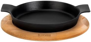 Döküm Yuvarlak Sahan Döküm Demir Yekpare Çift Kulplu Kayın Servis Ahşabı. Çap(Ø)18cm.