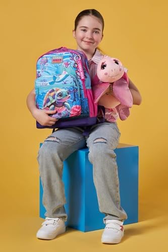 Dört ayrı bölmesi bulunan sırt çantası Ön bölümünde bir adet çift bölmeli ek aksesuar bölümü bulunmaktadır Çantanın ana gövdesinin en ön kısmında bulunan bölüm A4 sunum dosyası gibi eşyalarınızı taşımak için uygun ölçülerde üretilmiştir Çantanın yan kısımlarında iki adet esnek file malzemeden suluk ve aksesuar cebi bulunmaktadır Dip kısmı sağlamlığı arttırmak adına, daha kalın ve ekstra koruyucu malzemeler ile üretilmiştir Dört Bölmeli Pembe Mor Kaplumbağa Desenli İlkokul Sırt Çantası – Kız Çocuk