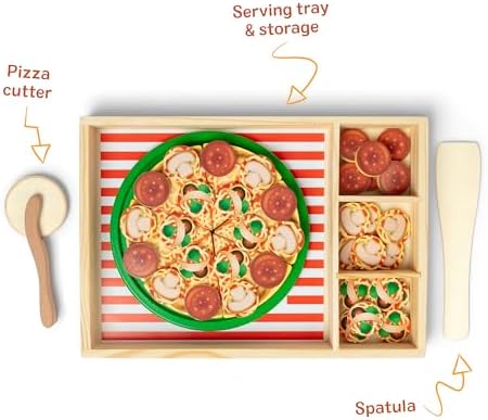 Menşe Ülke: Çin Ahşap kutu içerisinde 63 parçalı pizza seti Ahşap kutu, servis tablası, pizza dilimleri, değiştirilebilir pizza malzemeleri, pizza bıçağı ve spatula Pizza dilimlenirken kesme sesi çıkarır Avrupa birliği ve abd oyuncak güvenlik standartlarına uygundur & Doug 10167 Ahşap Pizza Partisi