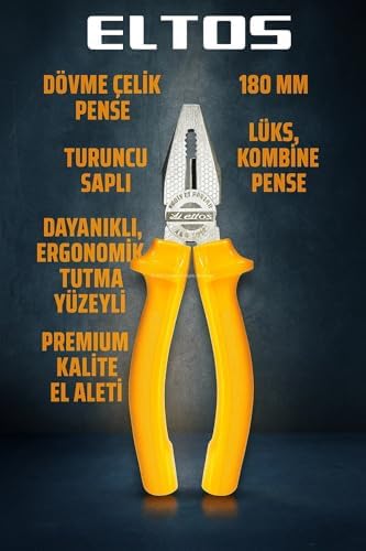 Dövme Çelik, 180 mm, Turuncu Saplı, Lüks, Kombine, Dayanıklı, Ergonomik Tutma Yüzeyli, Premium Kalite, El Aleti