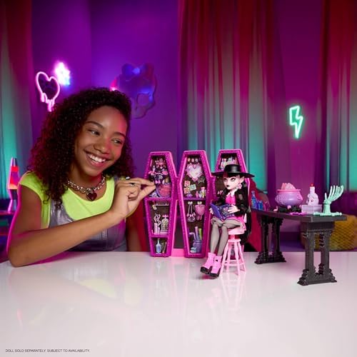 DRACULAURA'NIN GİZLİ İKSİR ODASI™ Oyun Seti 12'den fazla aksesuar ve sürpriz dönüşümler içeren Draculaura'nın Gizli İksir Odası oyun seti JBF15