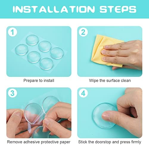 Duvar kapı stoperi, 6 adet duvar kapı stoperi seti, 40 mm silikon kapı stoperi, duvar, kendinden yapışkanlı, şeffaf, yuvarlak, kapı kolu tamponu, duvar koruması, buzdolabı koruması, duvar