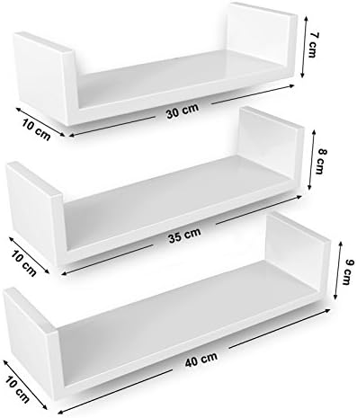 3 raf beyaz yüksek parlak bir yüzeyle etkileyicidir ve boş duvarlarınızı stil ve karakter vermek için esnek bir şekilde birleştirilebilir, raflarda dekorasyon veya resim çerçevelerini de tutabilirsiniz Yüksek kaliteli sunta bulunur ve güçlü, sağlam ve dayanıklıdır Duvar rafları 15 kg'a kadar ağırlığa dayanabilir Duvar raflarının yan duvarları kitaplarınızı, CD'lerinizi veya DVD'lerinizi düşmesini ve güvenli bir ortamdan emin olun Duvarda delik açarak, kapalı vidalarla kitap raflarını duvara takarak kullanımı tamamlayabilirsiniz Zemin alanı almayan ve yine de oturma odasında, ev ofisinde, banyoda veya mutfakta ek depolama alanı oluşturmayan bir U şeklindeki 3 duvar rafları Duvar Rafları, 3'Lü Set, U Şeklinde Yüzer Raflar, Çok Parlak Yüzey, Yaratıcı Fikirler, Mdf'Den Yapılmış Depolama Rafı, Beyaz Lws40Wt