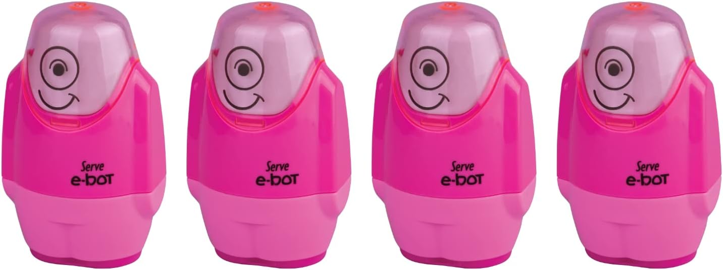 Parlak ve Dayanıklı Silgi Kapaklarında Yüz İfadesi Bir Tarafında İz ve Toz Bırakmayan Kaliteli Silgi Diğer Tarafında 2 Farklı Boyutta Kalemi Açmaya Elverişli Dayanıklı Kalemtıraş Geniş Atık Haznesi 4'lü Set Pembe Renk E-BOT SİLGİLİ KALEMTIRAŞ FOSFORLU PEMBE 4LU SET