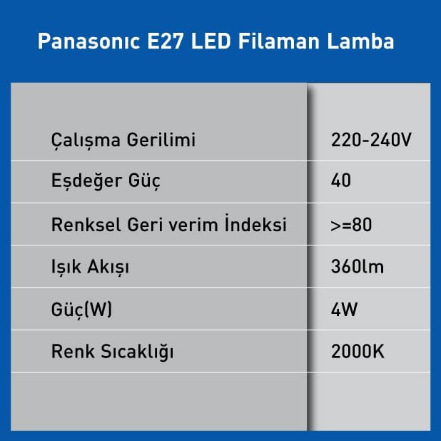 E27 FİL LAMBA, SARI IŞIK 4W 360LM 2000K GOLD