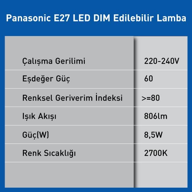 Dim edilebilir E27 LED Dim Lamba 8.5W 806LM 2700K E27 LED Dim Lamba 8.5W 806LM 2700K