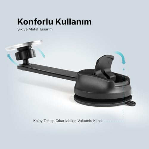 Mükemmel manyetik tutuş performansı için MagSafe* uyumlu En iyi görüntüleme açısı için dönebilen başlık ve ayarlanabilir kol Şık ve metal tasarım Güvenli sürü için kolay kullanım Kolay takılıp çıkartılabilen vakumlu klips Telefonu dikey veya yatay kullanım imkanı Ultra ince çıkartılabilir manyetik plakalar Tüm telefonlar ile tamamen güvenle kullanılır * 12 ve sonrası için EasyDash Pro M MagSafe Uyumlu Araç içi Telefon Tutucu 2TT38