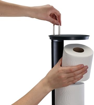 Ayrık ve hijyenik banyo depolama çözümü Üç adede kadar yedek tuvalet rulosu tutar Parmak kancalı kolay erişilebilen kapak İnce tasarım tuvaletin yanına düzgün bir şekilde oturur Dayanıklı, parlatılmış paslanmaz çelik kaplama EasyStore Luxe Paslanmaz Çelik Gizli Tuvalet Kağıdı Tutacağı, Kapaklı Stand, 3 Ruloya Kadar Hods