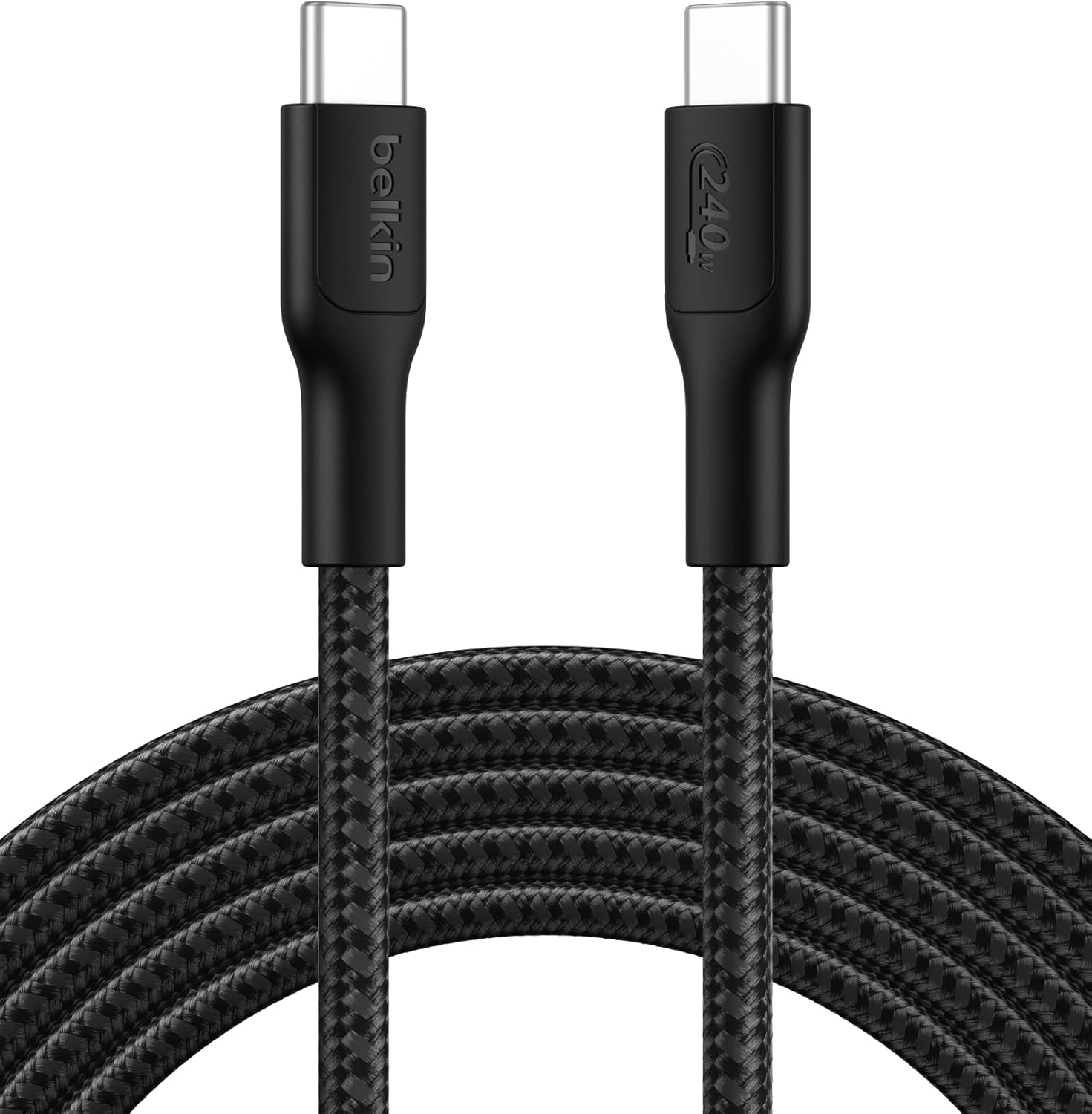 Eco Örgülü USB-C – USB-C Kablosu, 3 m, 240 W, Yumuşak, Esnek Hızlı Şarj Kablosu, 16, Galaxy S25, 9, MacBook, iPad Pro ve Daha Fazlası için Tip-C Şarj Kablosu – Siyah (USB 2.0)