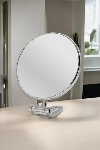 3x Büyüteç Özellikli Çift Taraflı Ayarlanabilir Eğimli Elde Tutulabilen Ergonmik Sap Krom Kaplama Efe Mark Beauty Serisi 3x Büyüteçli Çift Taraflı Ayarlanabilir Eğimli Masa Üstü Makyaj Aynası 16×16 CM Yuvarlak