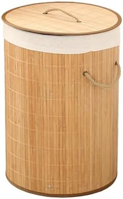 Ekolojik Bambu Çok Amaçlı Saklama Sepeti, Pamuk Bez İç Astarlı, Kapaklı ve Halat Saplı Modern ve Minimalist Tasarım (Yuvarlak)