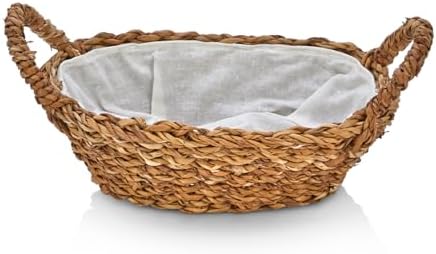 El Yapımı Doğal Hasır Kulplu Çok Amaçlı Dekoratif Oval Sepet, Hasır Kulplu Ekmek Sepeti (27x18x8 cm)