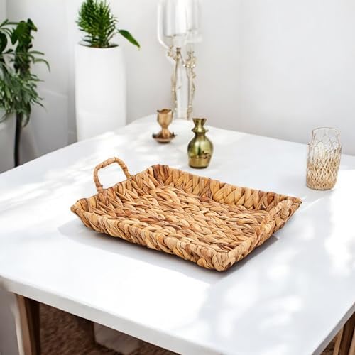 El Yapımı Su Sümbülü Hasır Kulplu Dekoratif Tepsi Küçük Boy (29cm*23cm*4cm)