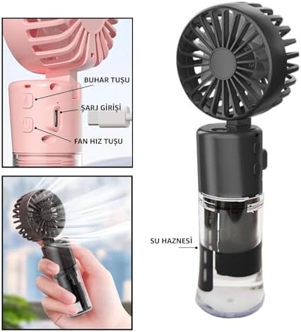 Elle Tutulabilir Taşınabilir Buharlı Vantilatör Mini Fan – 4 Hız Ayarı, Şarjlı, Misting Özelliği, Kompakt ve Hafif Tasarım, Buharlı Vantilatör Fan Asorti Renk