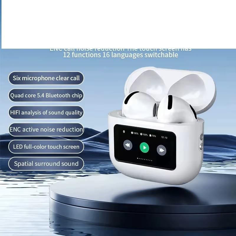 ENC+ANC Bluetooth Kablosuz Kulaklık 5.2 Led Dokunmatik Ekranlı Şarj Kutusu Renkli Lcd Hd