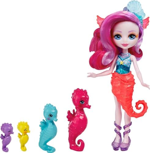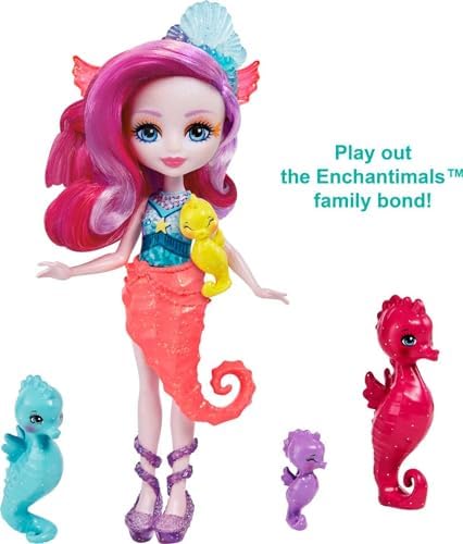 Bu ürün ToyiMoyi tarafından gönderilecektir. Eğitici oyuncaklar Enchantimals HCF73 – Enchantimals Sedda Seahorse bebeği (yakl. 15 cm), 4 deniz atı hayvan figürü, 3 yaşından büyük çocuklar için harika bir hediye Enchantimals Aile Serileri Oyun Seti GJX43 – Sedda Seahorse