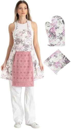 enoteks Havlulu Mutfak Önlüğü Fırın Eldiveni Ve Tutacak Gülkurusu