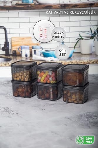 Erzak Saklama Kabı Sızdırmaz Kapak6'lı Set Füme -(Ölçü Kabı Hediyeli)