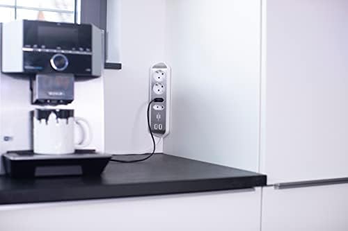 2 adet 3.10 hızlı şarj özellikli usb giriş 4 soketli 2 metre uzunlukta kablo Açılı fişler Estilo Köşe Priz Çubuğu – 4'lü Yüksek Kaliteli Paslanmaz Çelik Yüzeyli, 2 Schuko ve 2 Euro Priz, USB Şarj Fonksiyonlu, Gümüş/Beyaz
