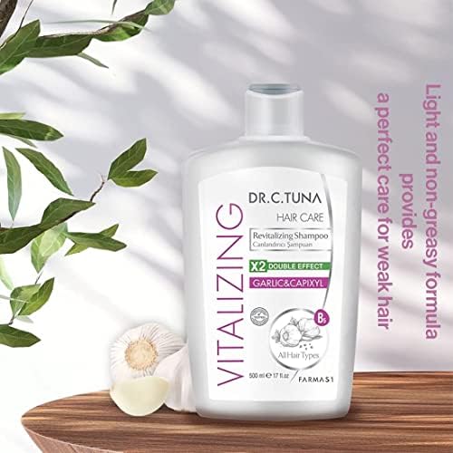Dr C Tuna Canlandırıcı Şampuan, koparak dökülmelere karşı etkin çözüm sunuyor!. Sarımsak ve Capixyl ile geliştirilen ve zenginleştirilen formül, saçı beslemeye ve saç telleri üzerinde hasara uğramış noktaları yeniden yapılandırır. Böylelikle koparak dökülmeye eğilimli zayıf saçlar güçlenir ve parlak bir görünüm kazanır Farmasi Vitalızing Sarımsaklı Şampuan 500 ml