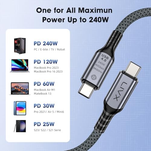 FAST USB 4.0 40Gbps, 240W, 8K60Hz USB4.0 USB-C Kablosu 1 Metre Gri KLV-01