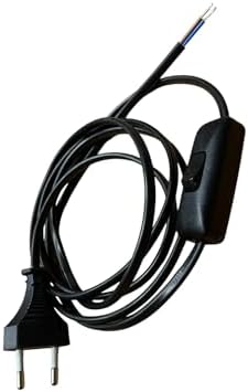 Fişli & Anahtarlı Arapuarlı Hazır Kablo | 2 Metre Siyah Uzatma Kablosu | 0,50 mm² Kesit | Aplik,, Masa Lambası, LED Trafosu ve Tuz Lambası İçin